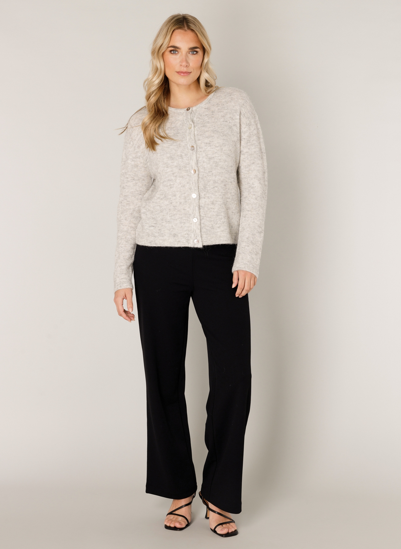 Vestje Yuli in grey melange. Dit vestje komt met ronde hals, lange mouwen en knoopsluiting. Bevat wol voor een zachte, warme feel.